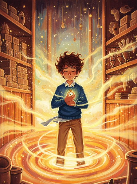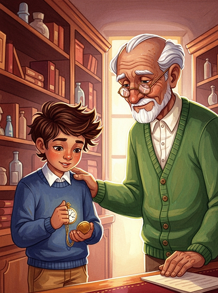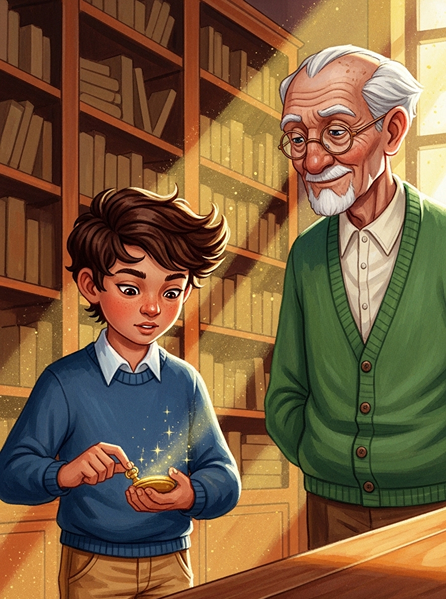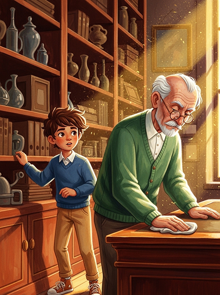 Leo loved the ancient smell of his grandfather Alistair’s antique shop. It was a mixture of beeswax, old paper, and quiet secrets. Sunlight danced through the windows, illuminating dust motes that swirled like tiny, golden galaxies. Alistair was busy polishing a mahogany desk. Leo wandered toward the back, where the "odds and ends" shelf lived. It was a place where forgotten things waited for someone to remember them.