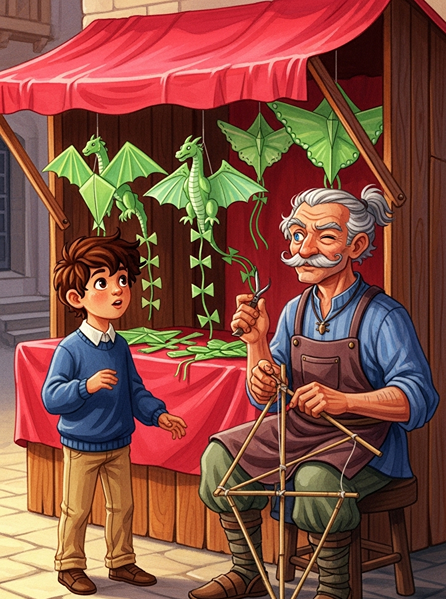 At the corner of the square, a stall draped in crimson silk caught his eye. An old man named Silas sat on a stool, surrounded by kites shaped like dragons and butterflies, made of paper and bamboo. Silas had gnarled fingers that moved with grace, threading a silk cord through a frame. He looked up and gave Leo a knowing wink. "The wind is perfect for a flight today," he said softly.